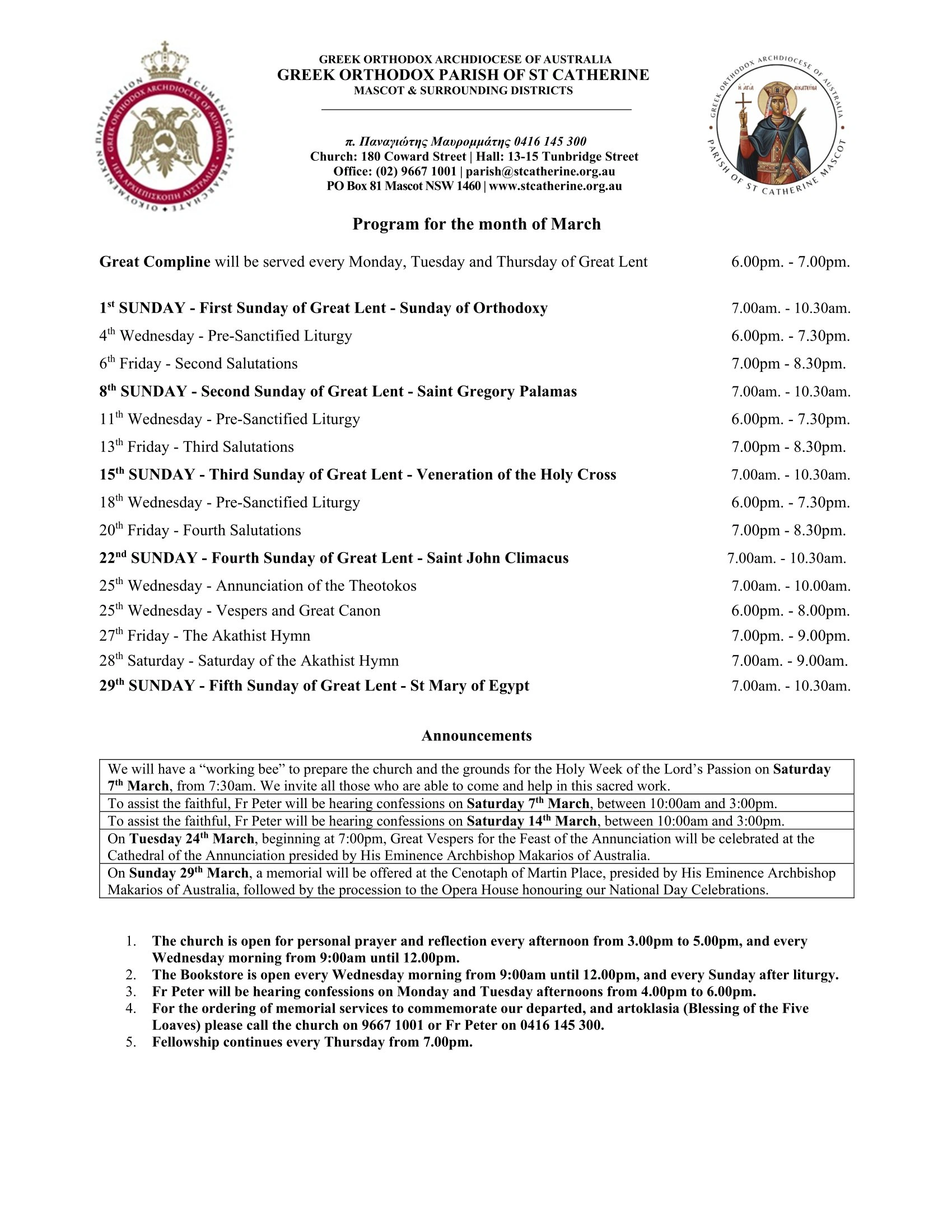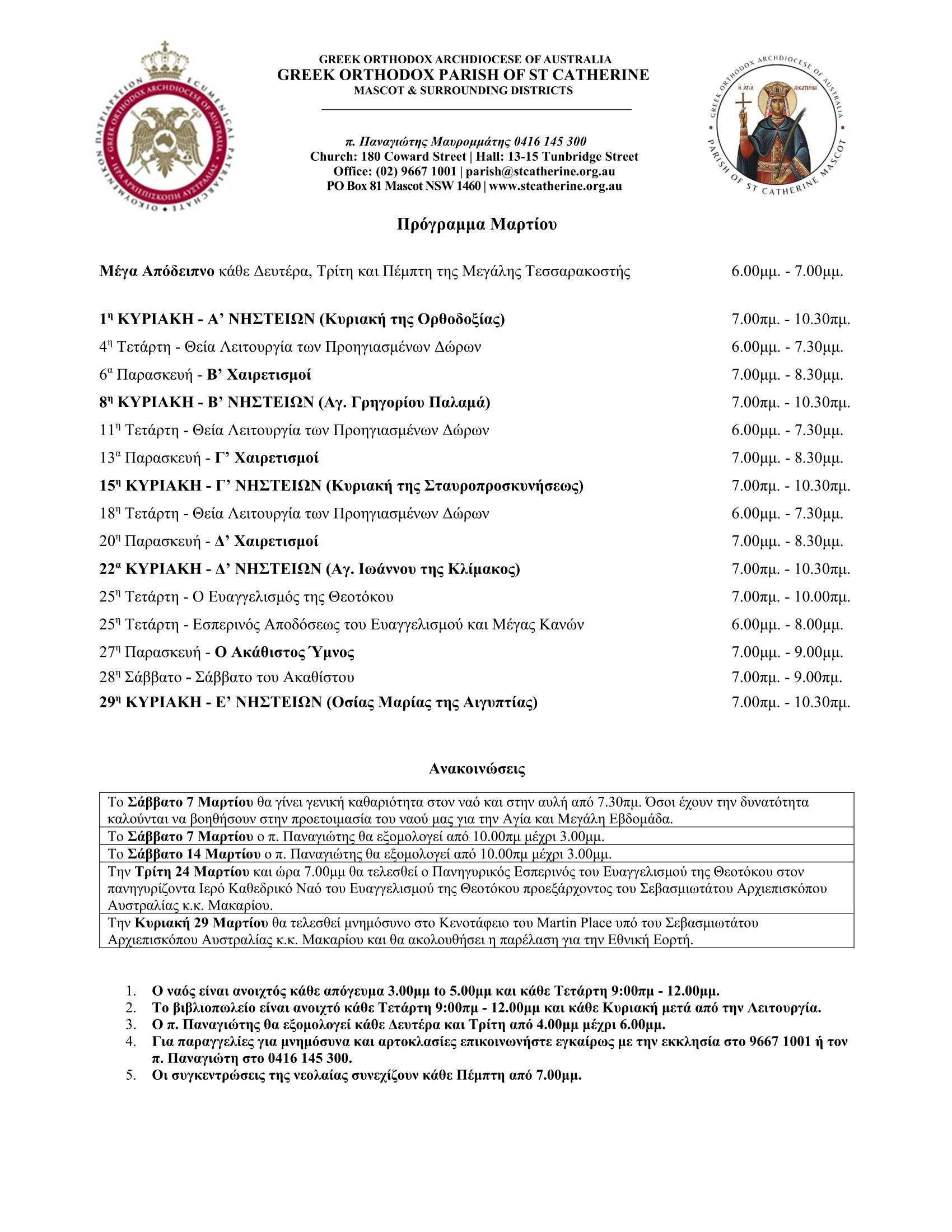 Saint Catherine's is a dynamic parish of the Greek Orthodox Archdiocese of Australia, serving the spiritual and liturgical needs of the faithful of Mascot and the surrounding districts.
