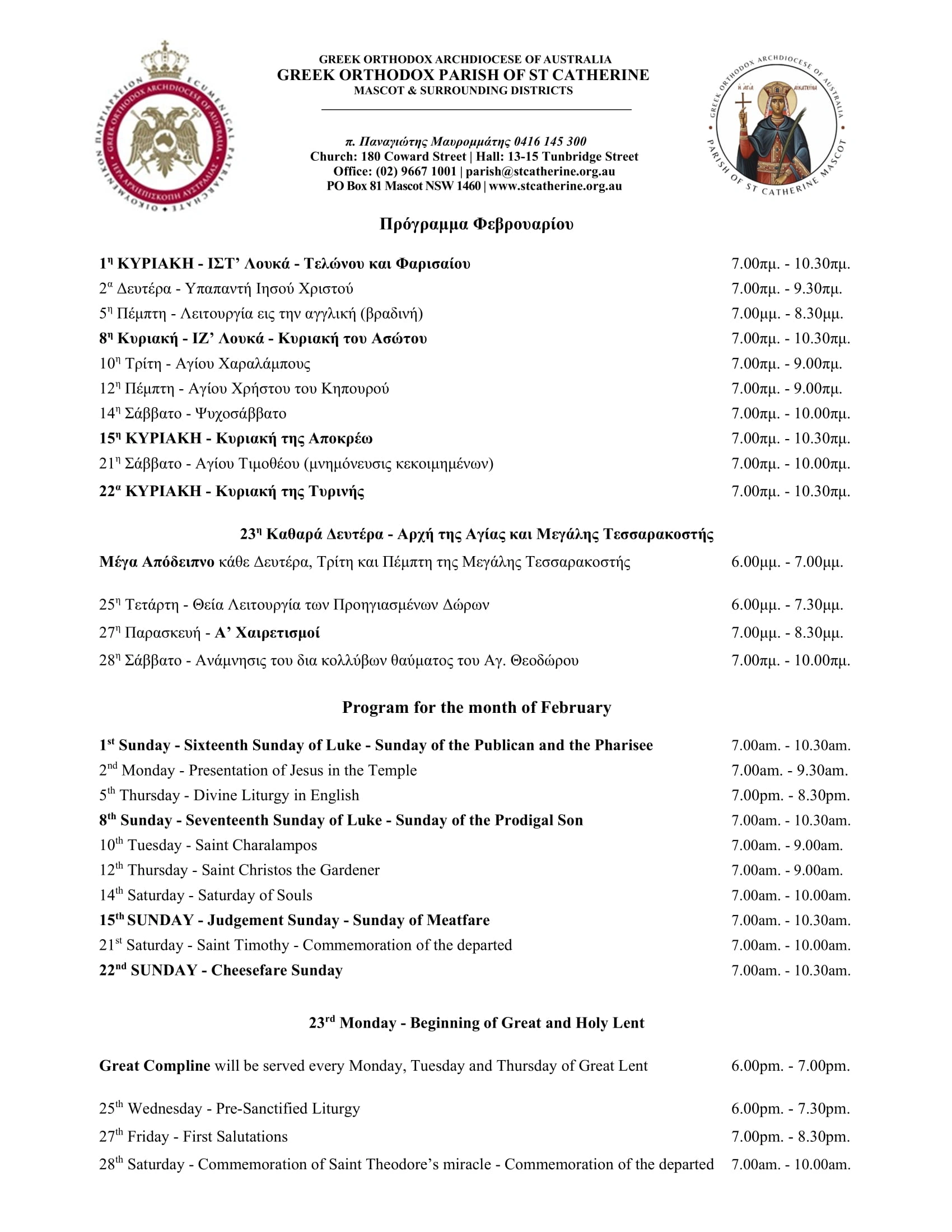 Saint Catherine's is a dynamic parish of the Greek Orthodox Archdiocese of Australia, serving the spiritual and liturgical needs of the faithful of Mascot and the surrounding districts.